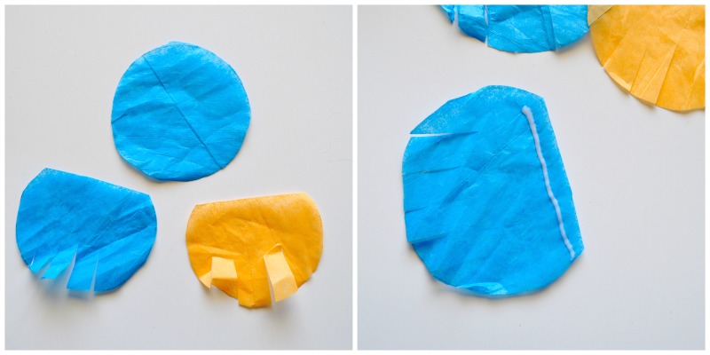 2. Cut out 4 circles from your tissue paper. We used a plastic fruit cup to trace the circles on our tissue paper and also used two different colors.