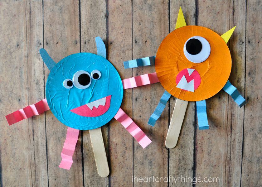 HOW TO MAKE CUPCAKE LINER MONSTER STICK PUPPETS