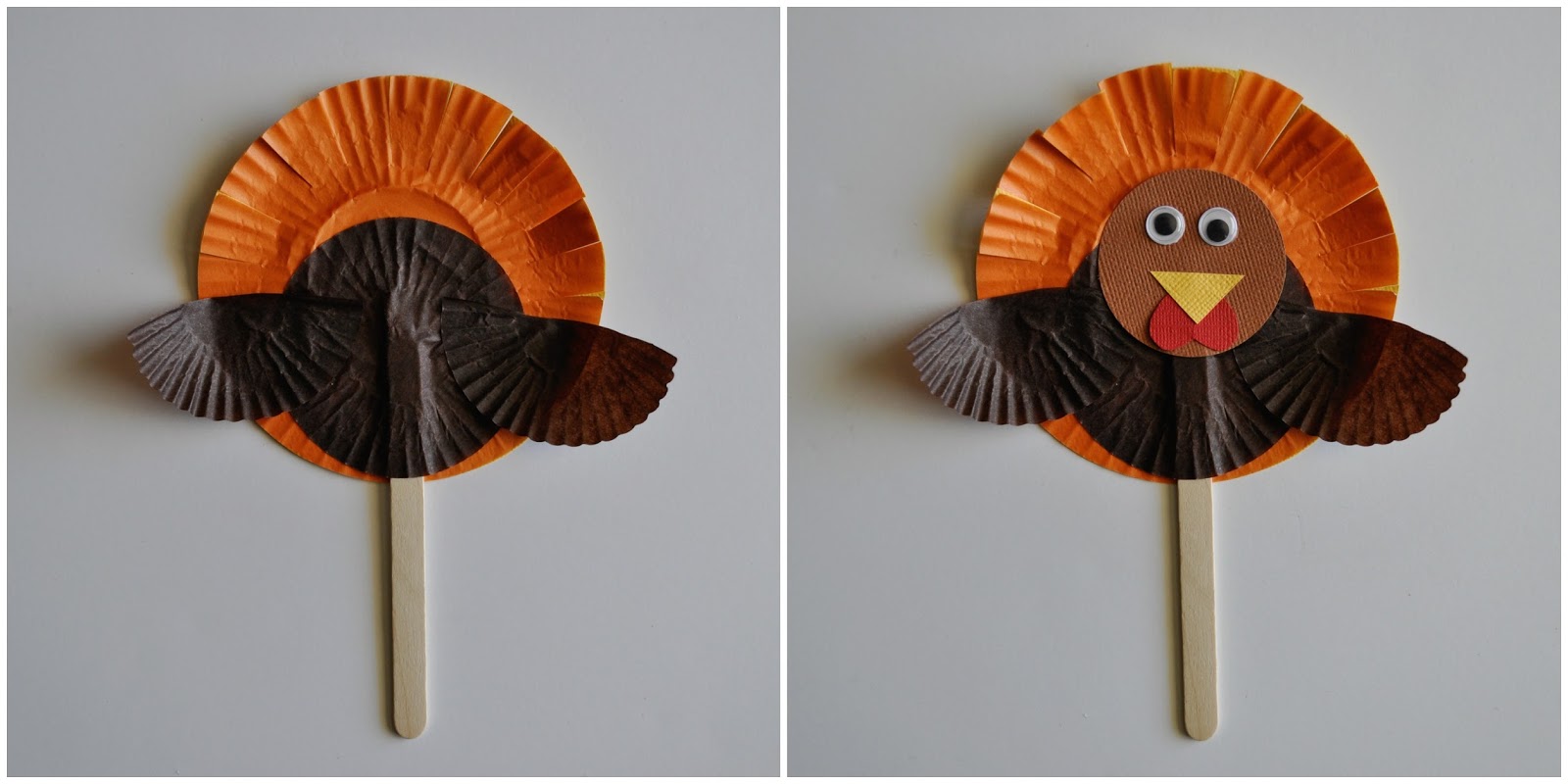 I love making crafts with my kids that can be interactive for pretend play or that we can use to reenact a story that we’ve just read. I came across some darling Cereal Box Turkeys over at Plum Pudding recently and I loved them. I decided to make more of a kid-friendly version that my children could help me with and we are using them as Turkey Puppets. We used one of my favorite crafting materials to make them also, cupcake liners.