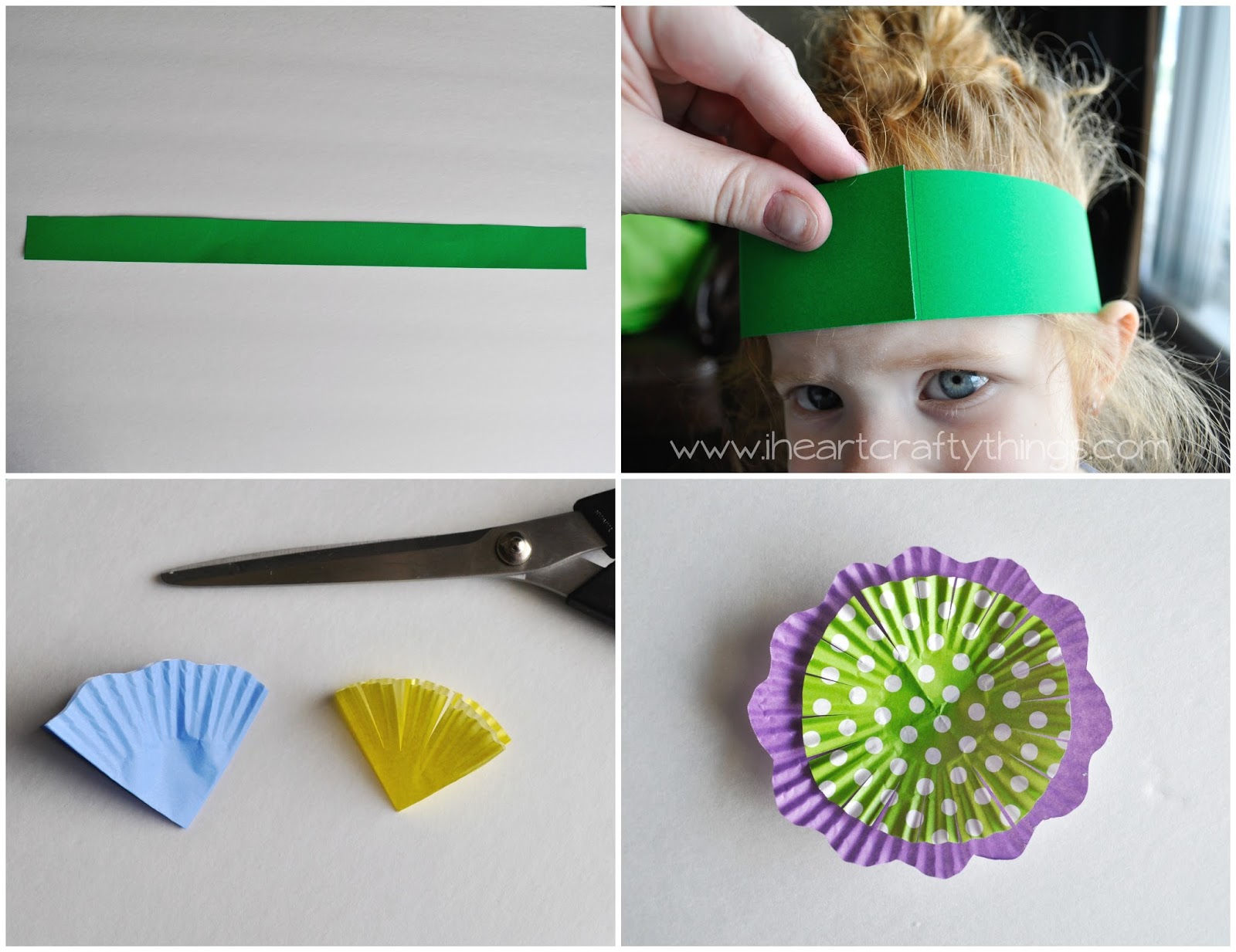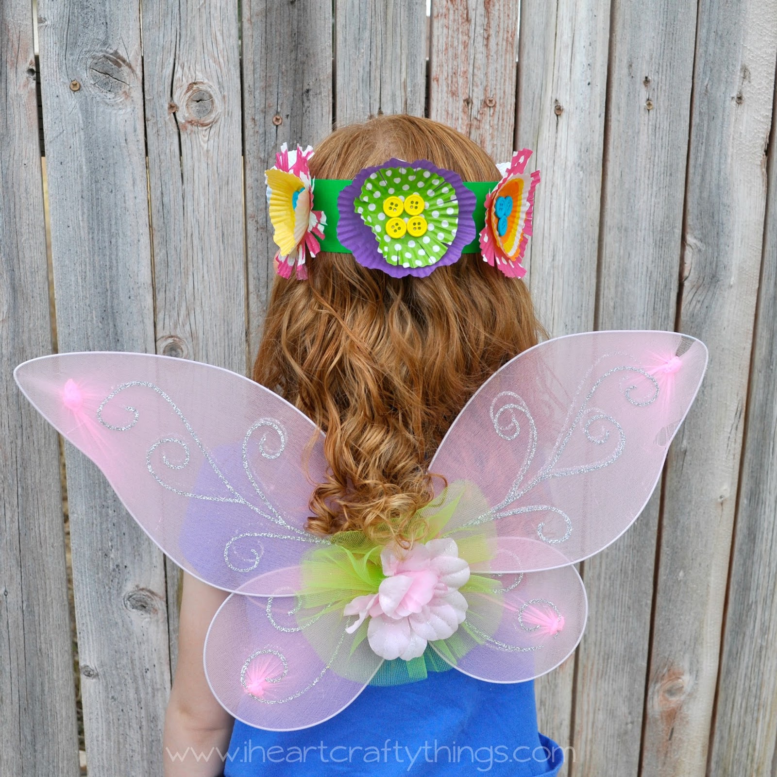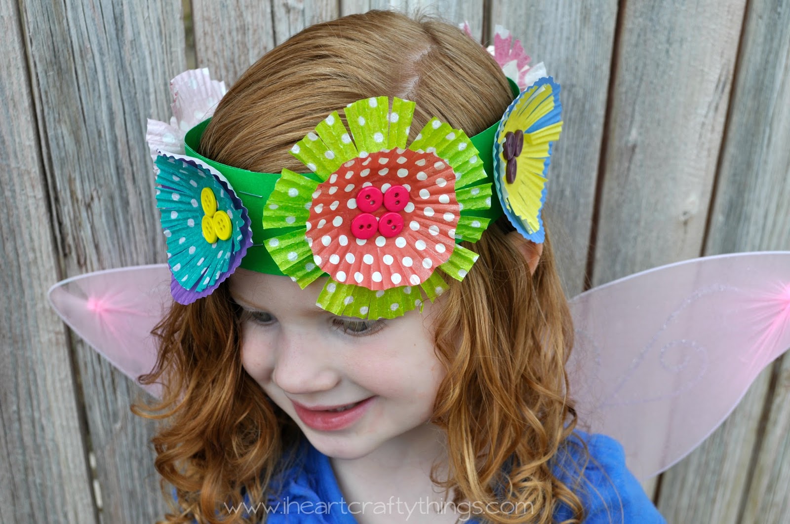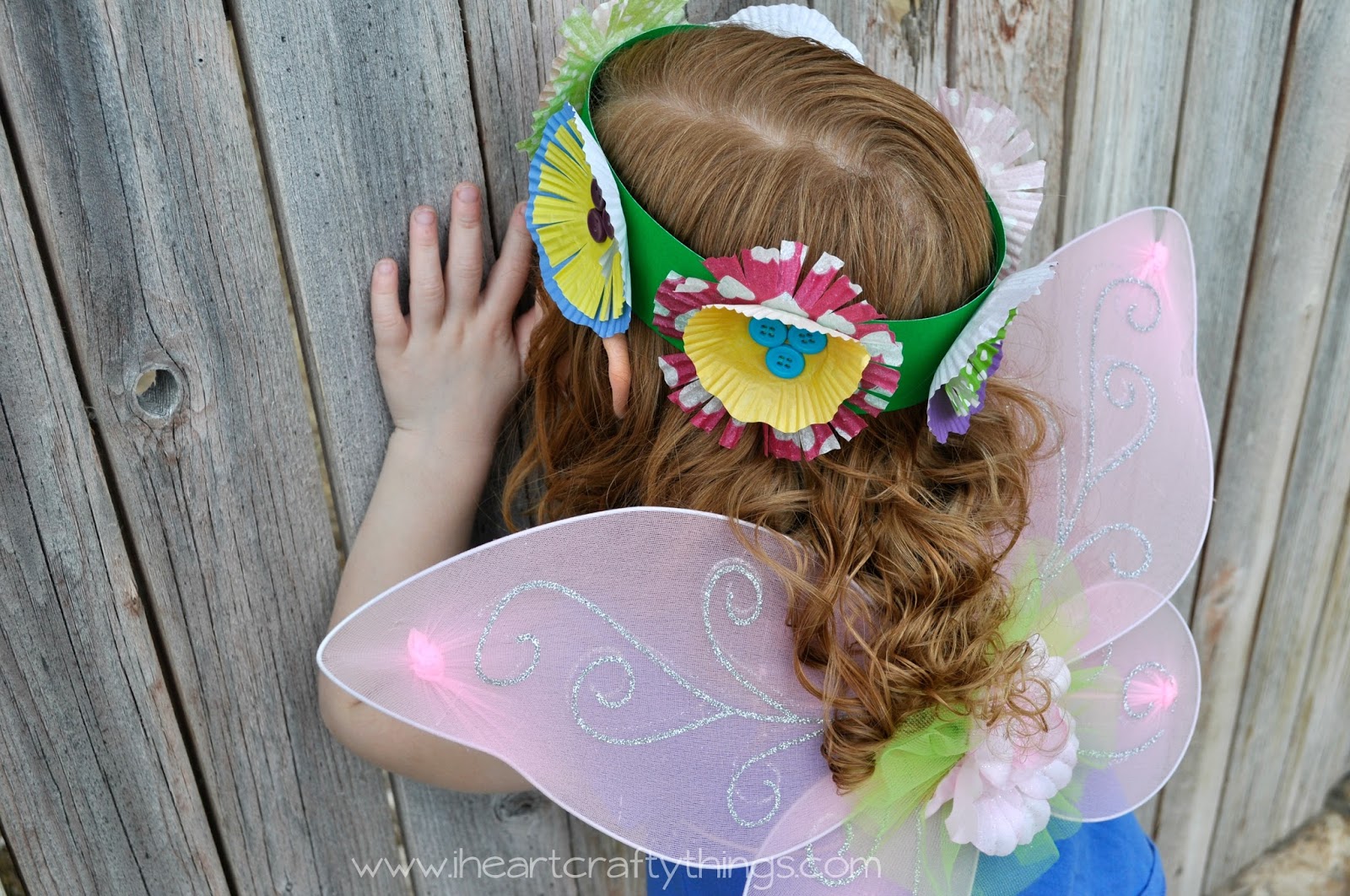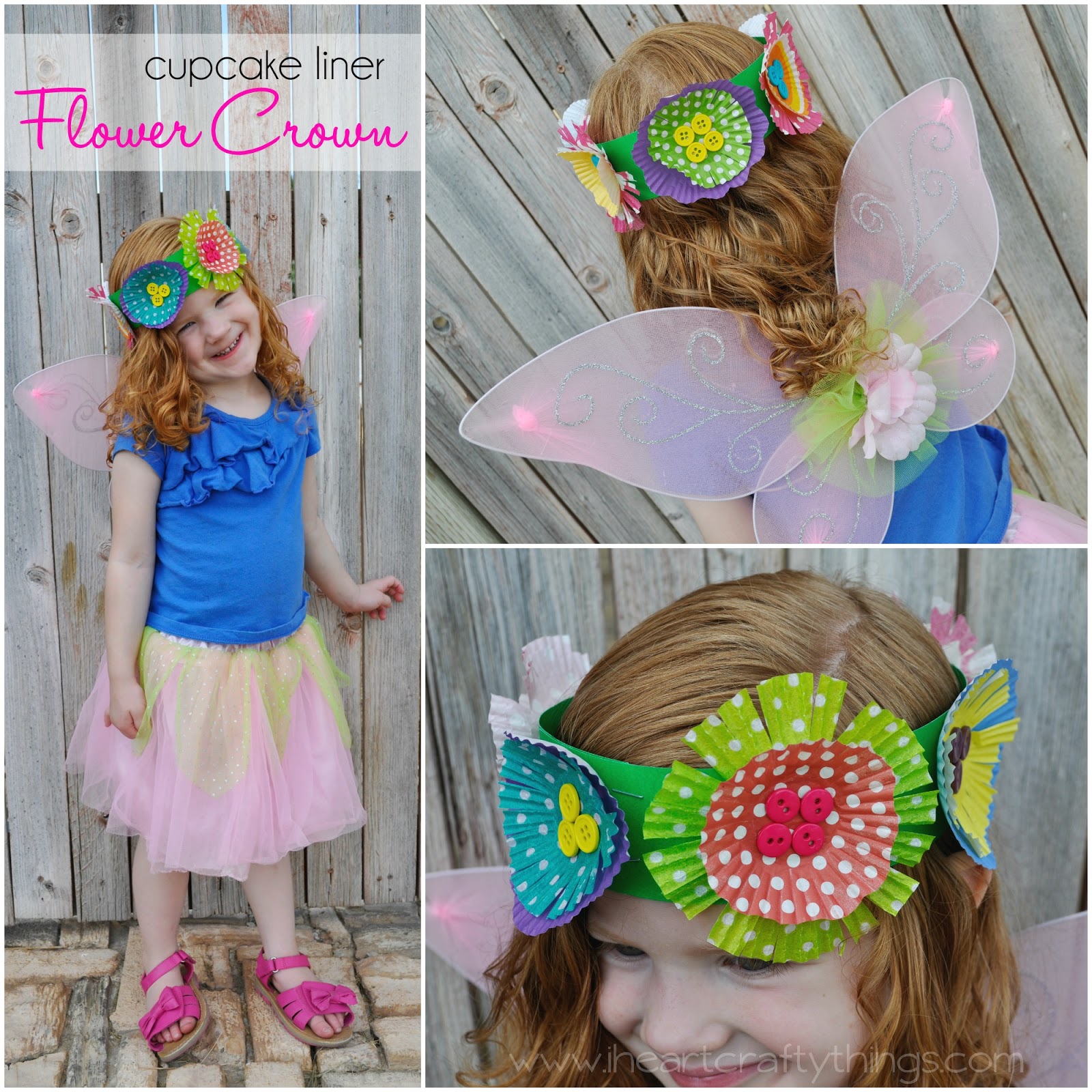 My daughter loves dressing up in her fairy costume and pretending to flutter around like a magical little fairy. As I was watching her play one day I thought about how a flower crown would be a perfect compliment to her costume. Since real flowers don’t last more than a day or two before withering on a traditional flower crown, and because we love making crafts, we came up with an alternative…A cupcake liner flower crown.