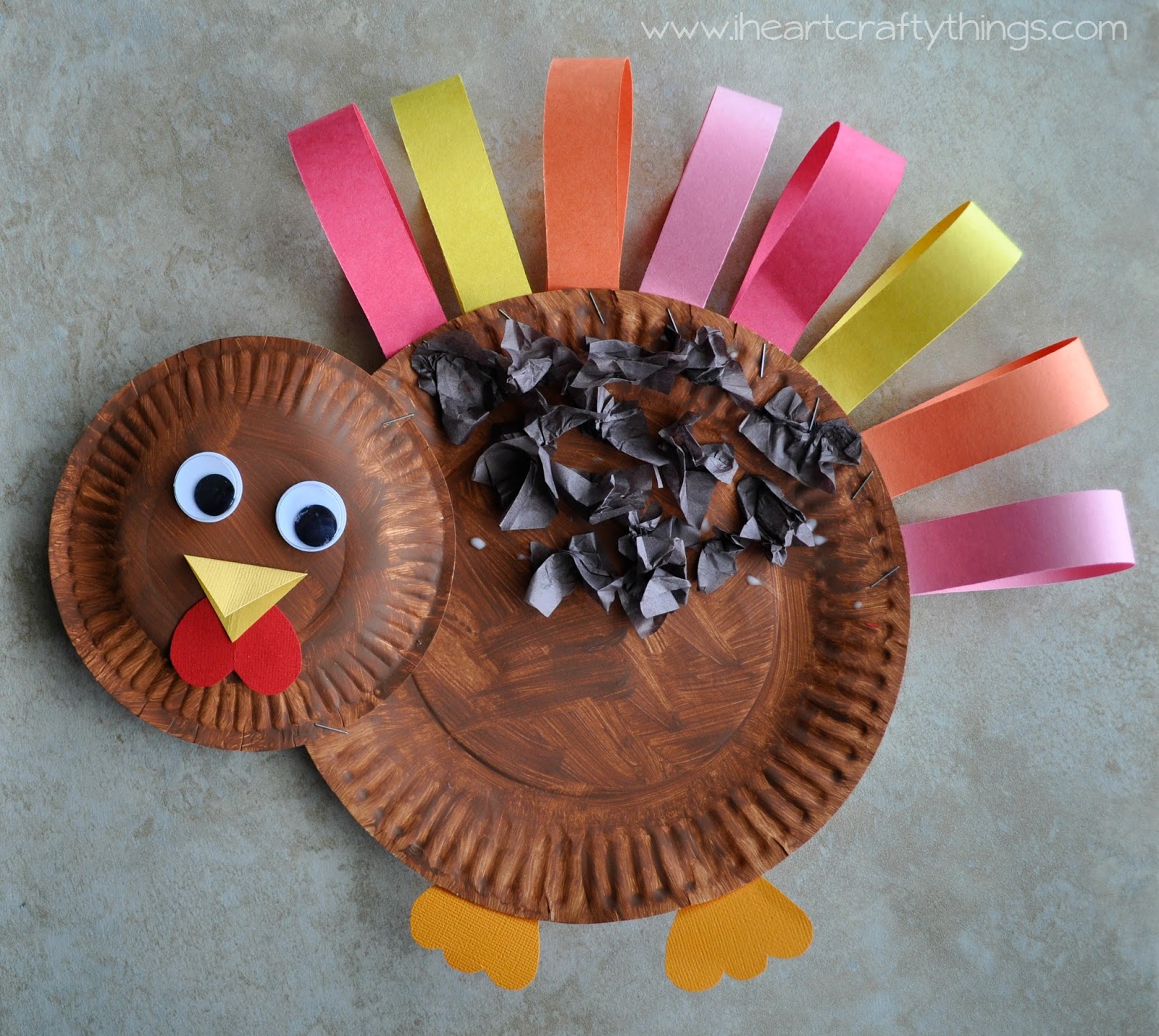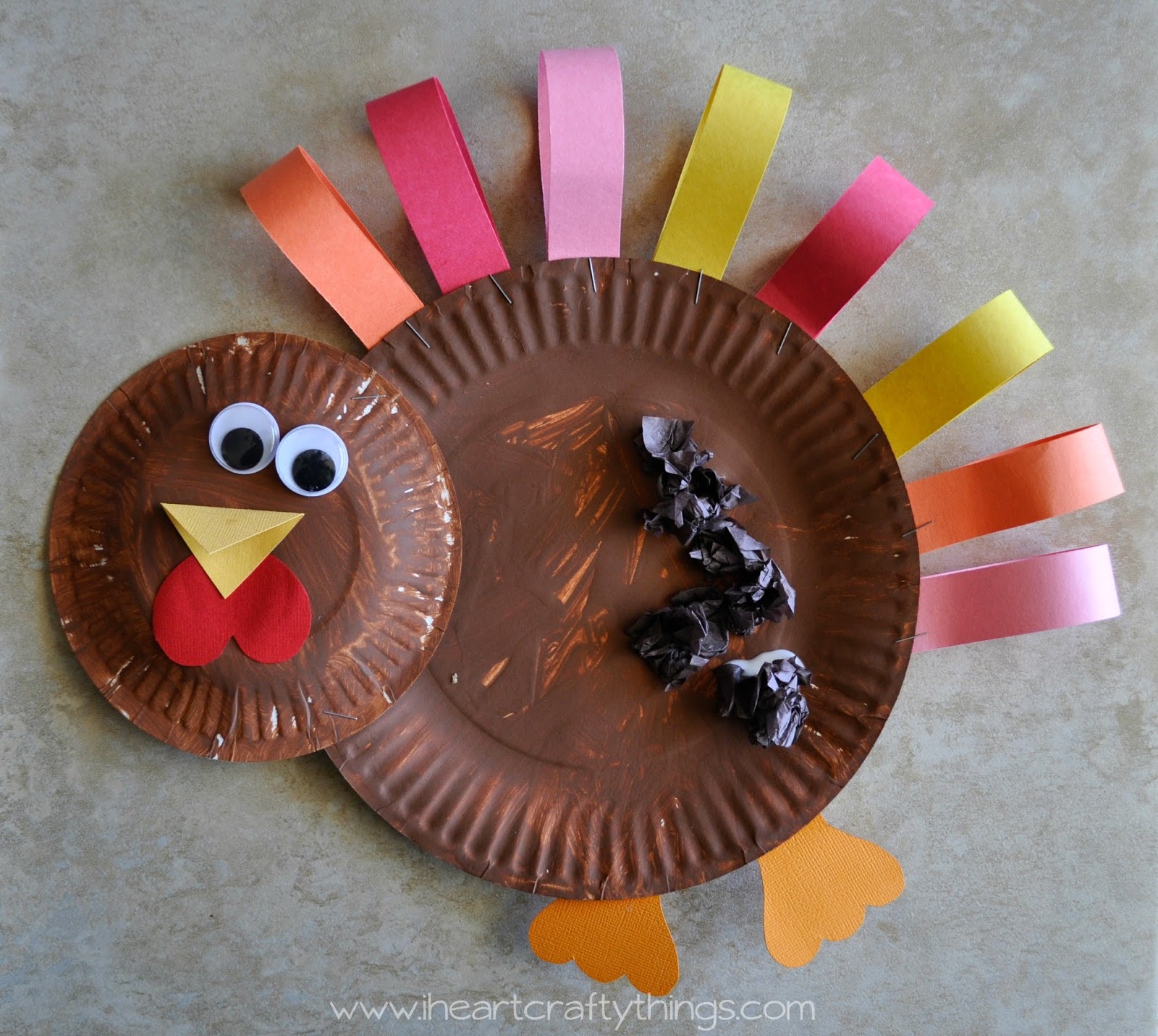 The one thing that’s odd about about being a blogger is the fact that I have to be a step ahead in my holidays, always planning and preparing way in advance for crafts I want to do. So while Halloween isn’t until next week, I already feel Halloween’ed out and I’m beyond excited to move on to Thanksgiving. A little sad, I know, but I really don’t mind since I love crafting so much. That being said, we’ve already made a trip to the library this week and picked up some of our favorite Thanksgiving books and today we made this adorable Paper Plate Turkey.